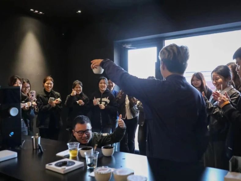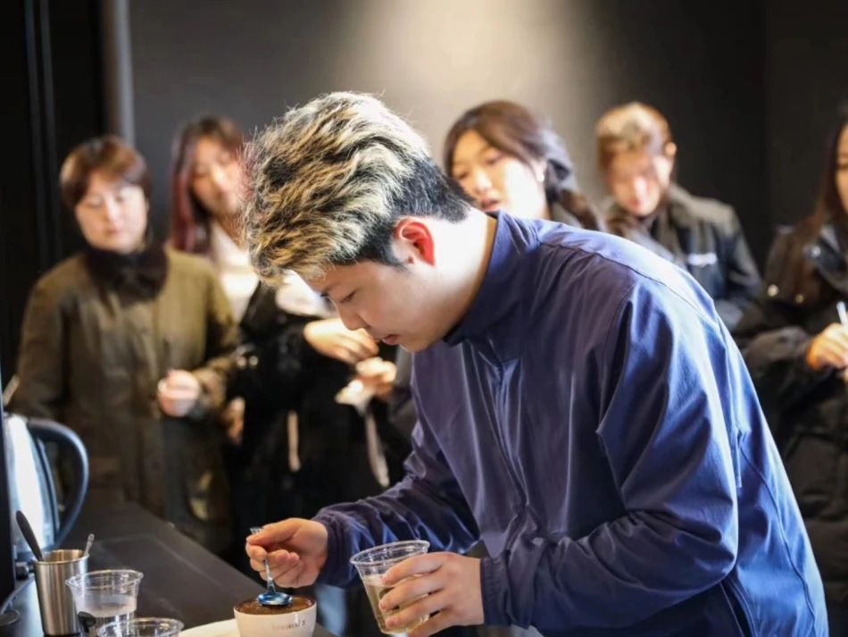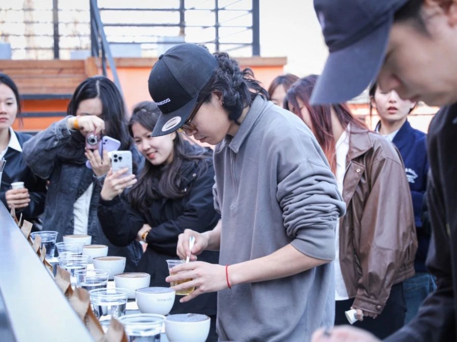 正式进入到杯测环节时,通过闻干香、注水、捞渣、闻湿香、高中低温啜吸品尝等步骤,同学们亲身感受到了不同产地、海拔高度、咖啡处理法等等因素赋予咖啡豆的独特风味。