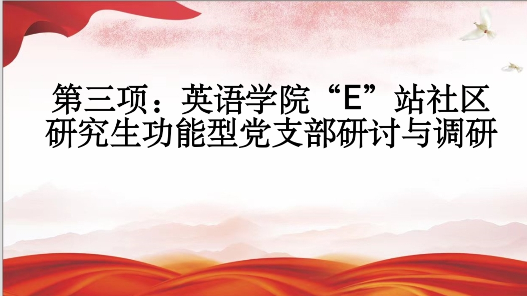 “E”站社区研究生功能型党支部支部书记韩秀老师主持,该支部全体党员同志共同参加本次会议,本次会议分为三项议程。