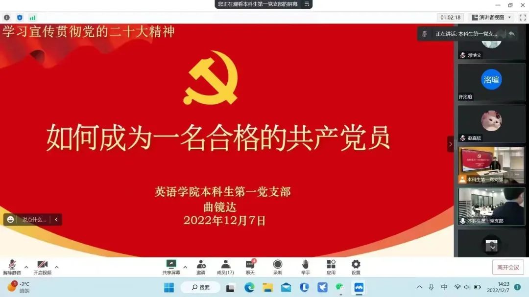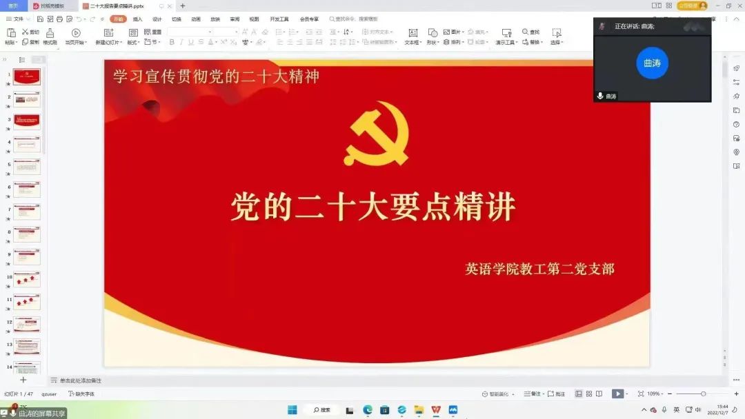 党委组织各党支部开展线上线下相结合的以“学习宣传贯彻党的二十大精神,踔厉奋发开新局”为主题的党日学习教育。学院领导班子成员和各支部书记分别为党员讲授党课。