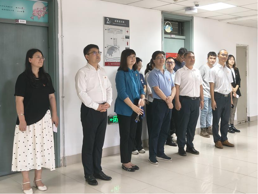 副院长王成东,研究生党支部书记黄新智,本科生第一党支部书记曲镜达,本科生第二党支部书记王艺凝、辅导员吴曼、达尼亚尔江·亚力坤江、李延奇老师以及娱乐游戏平台大全