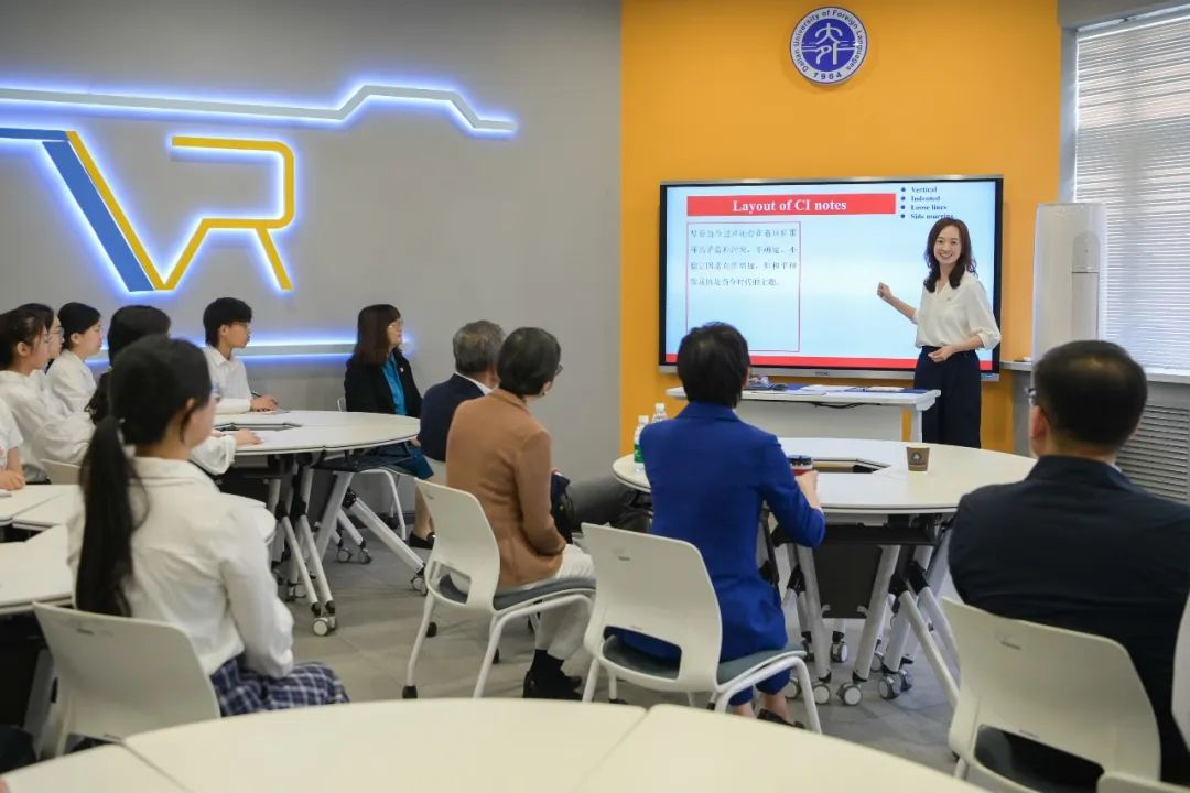 在VR英语实训中心,大使学长进入李锡纯老师的《口译工作坊》课堂,对英语专业人才培养、教育模式、教学理念、教学条件等给予了高度评价;同时,他还结合自己的学习和外交工作经历,鼓励同学们要夯实语言基本功,更多地了解博大精深的中国文化,传播好中国声音,讲好中国故事,不断推动中华文化更好地走向世界。