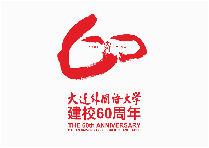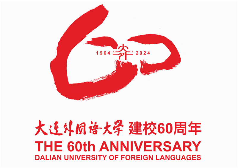 logo图形为数字60和大外明阳湖景色的毛笔大写意图像结合构成,明阳湖与辽宁外语专科学校时期的明阳公社有跨越时间的联系。明阳湖灵动宽广,象征着学校的人才辈出;在中国的传统文化中,水被赋予了丰富的象征意义和文化内涵,寓意生命、智慧和包容,平稳灵动的湖水更是学识和智慧的象征。