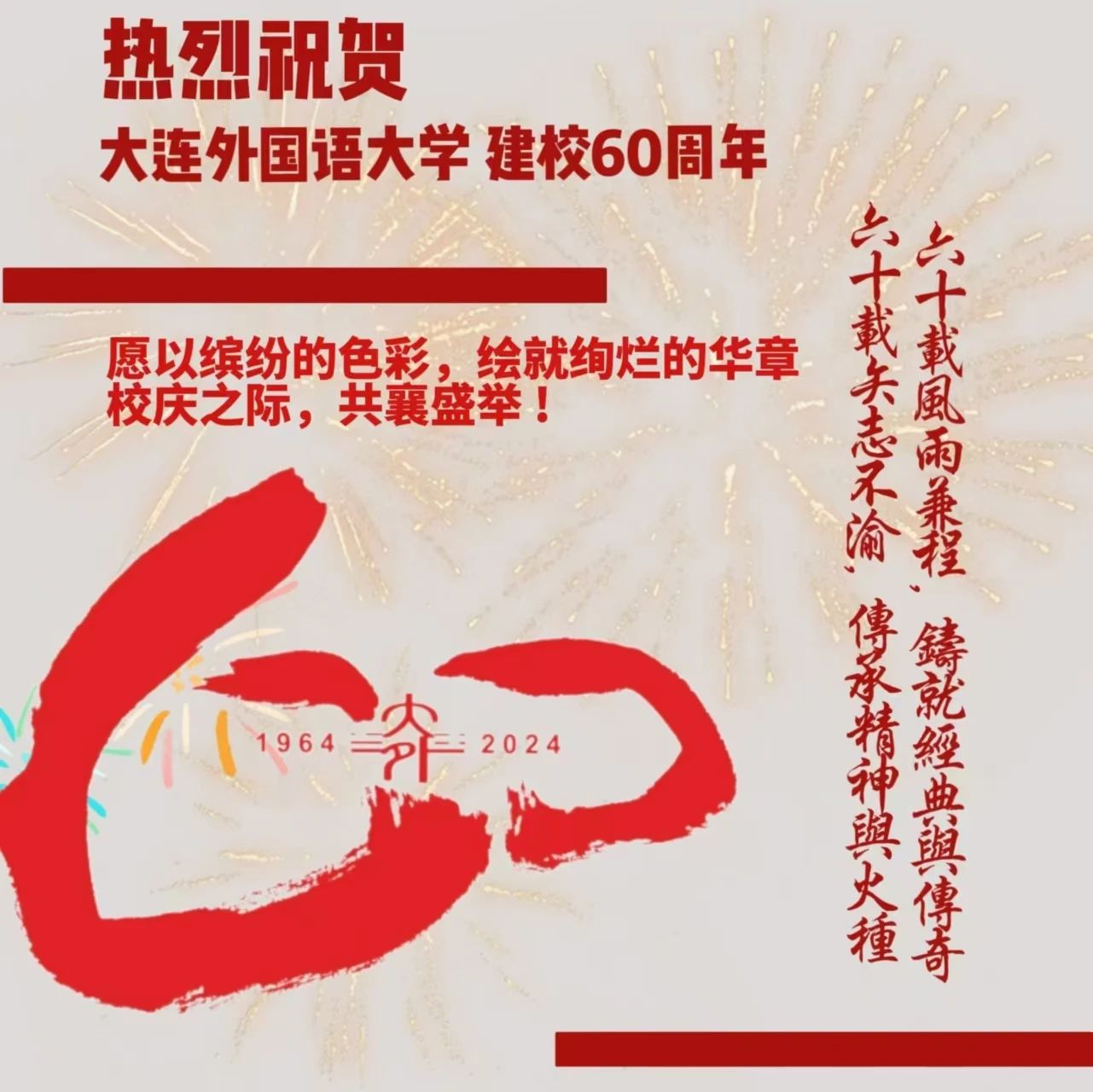 祝大连外国语大学60周年校庆圆满成功!愿您桃李满天下,春晖四方!